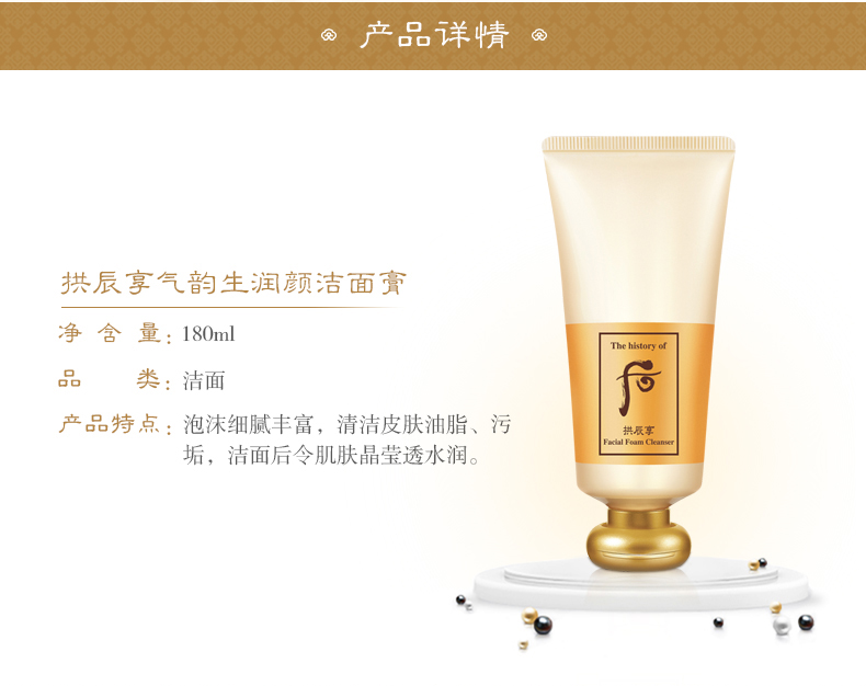 • 商品名称:【温和细腻】Whoo后拱辰享洗面奶气韵生润颜泡沫洁面膏(180ml)
