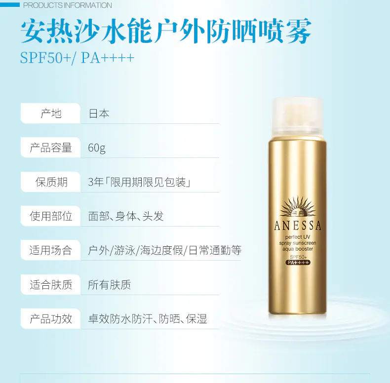 • 商品名称:日本 安耐晒喷雾金(60g)