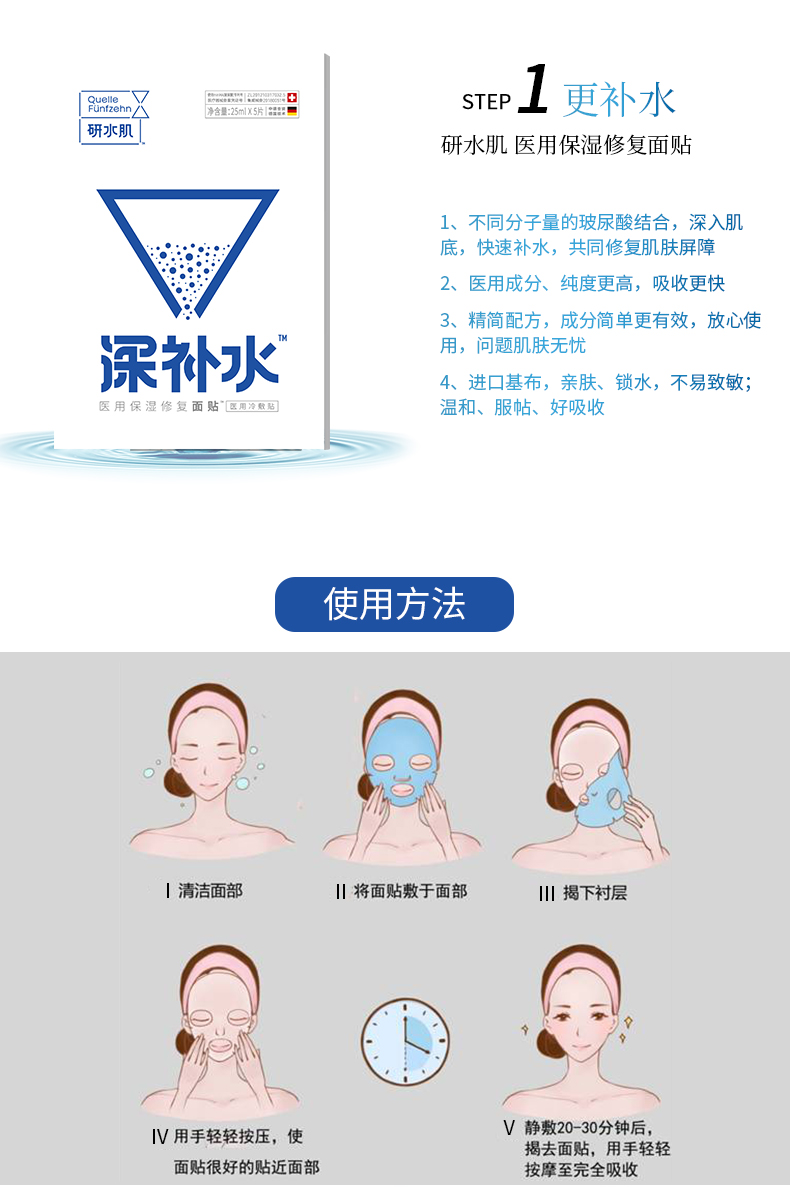 • 商品名称:研水肌补水两部曲(5片面膜+5瓶mini玻尿酸原液)(1套装)