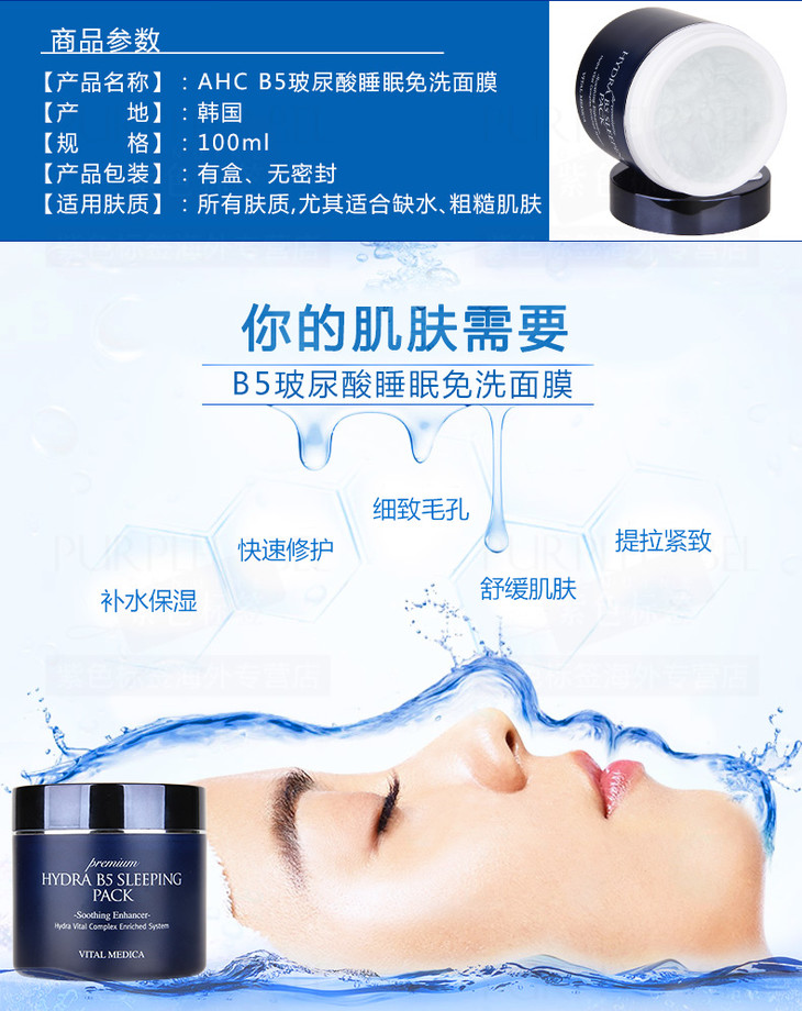 • 商品名称:韩国AHC睡眠面膜(100ml)